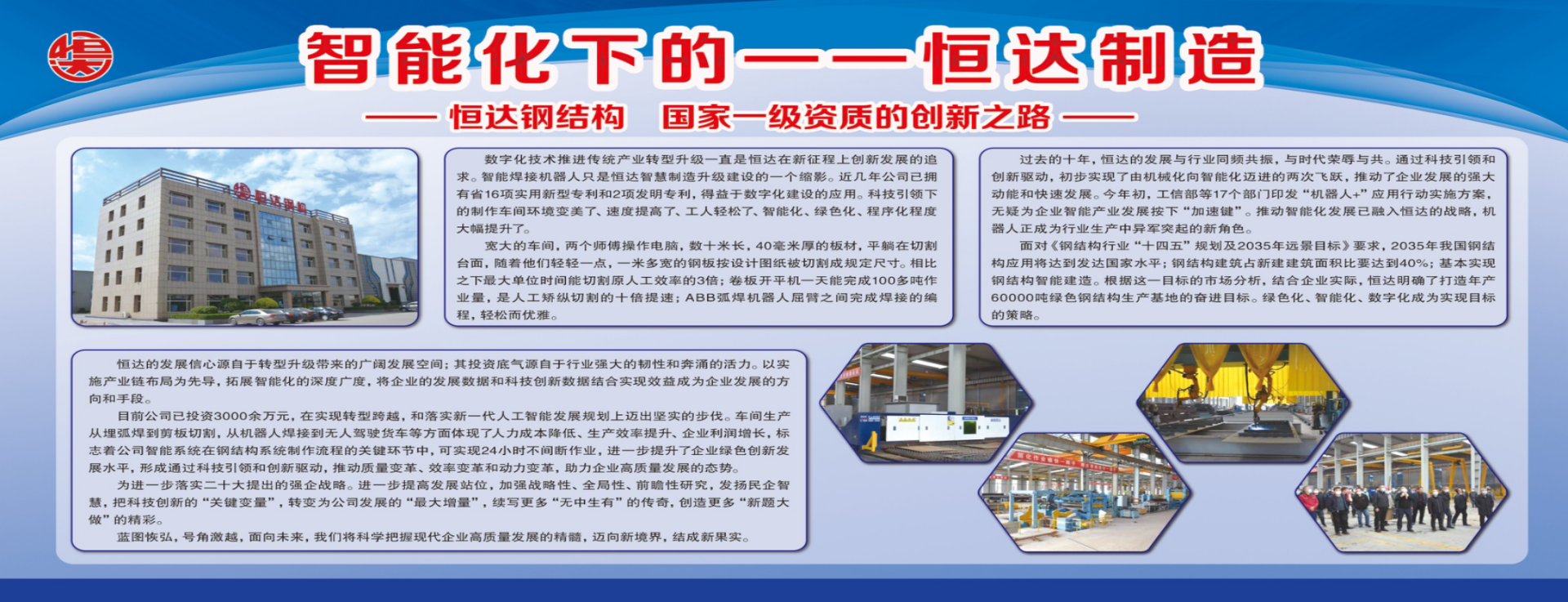 山西恒達鋼結構工程有限公司始建于1998年,位于國家歷史文化名城、晉商故里——山西祁縣,緊鄰208國道,坐落于省級經濟開發(fā)區,毗鄰喬家大院景區,地理環(huán)境優(yōu)越,交通十分便利。現有廠區占地面積200余畝,建筑面積60000平方米。